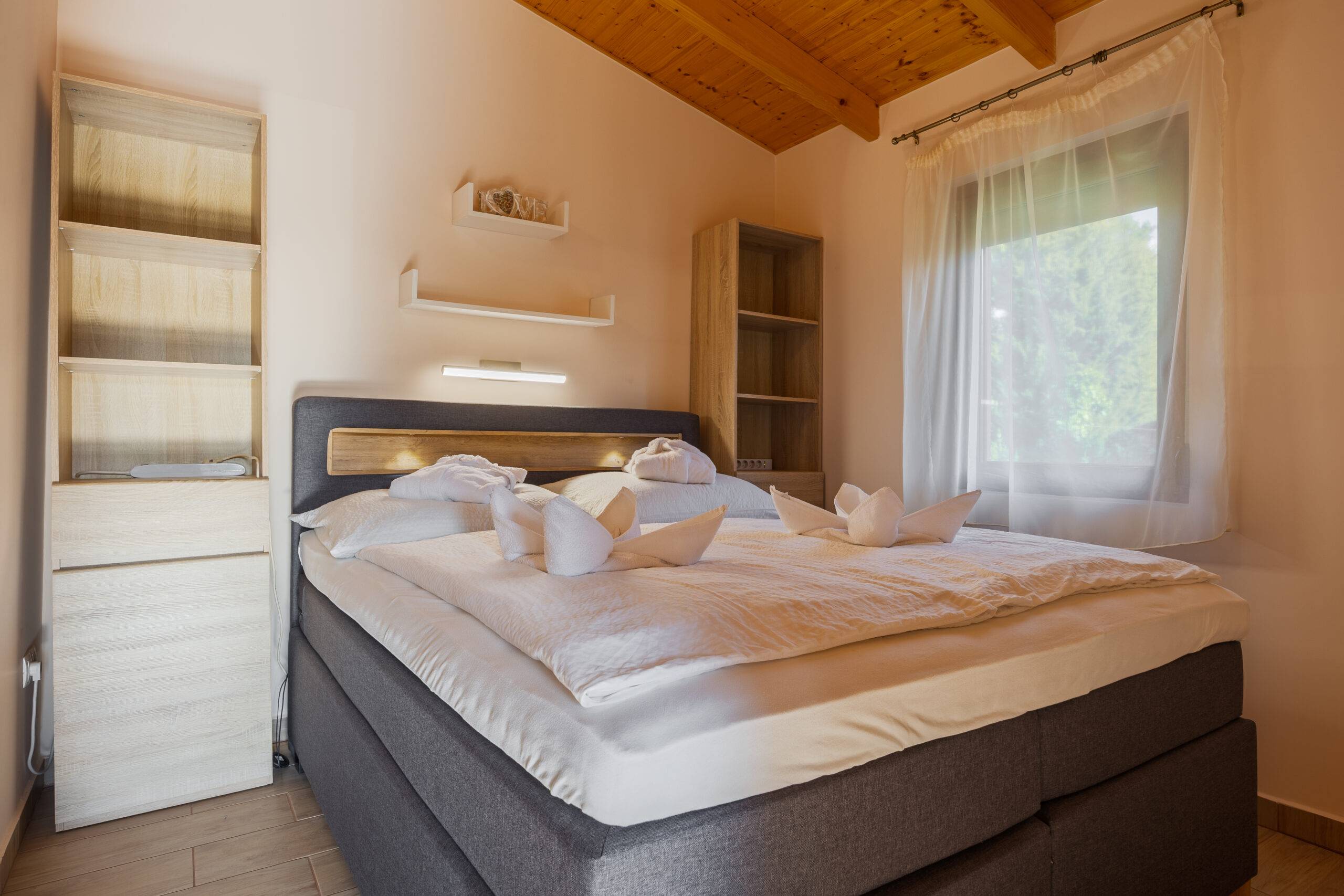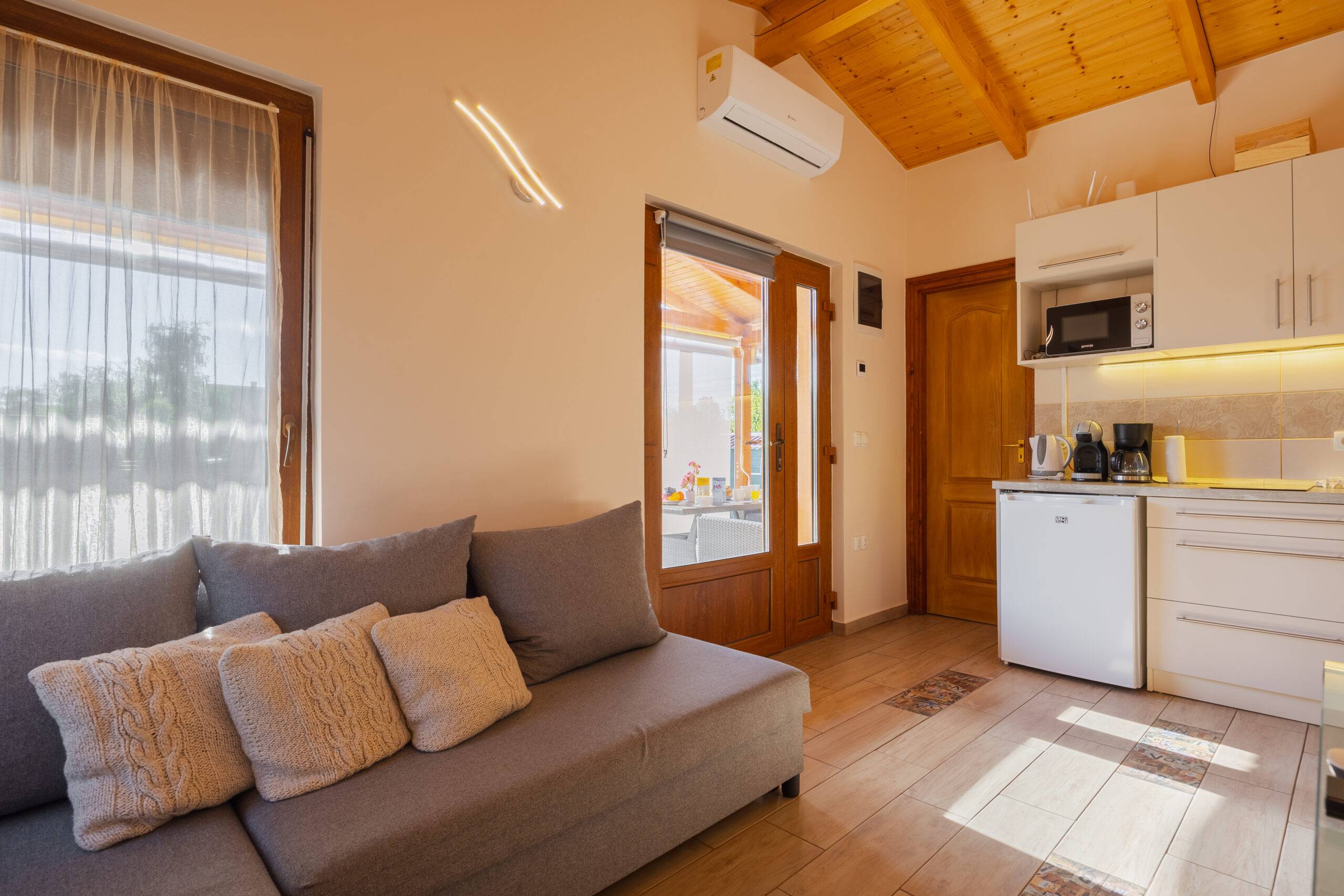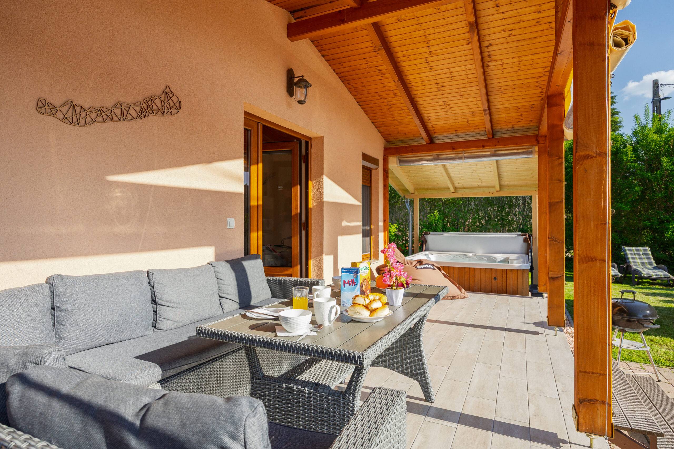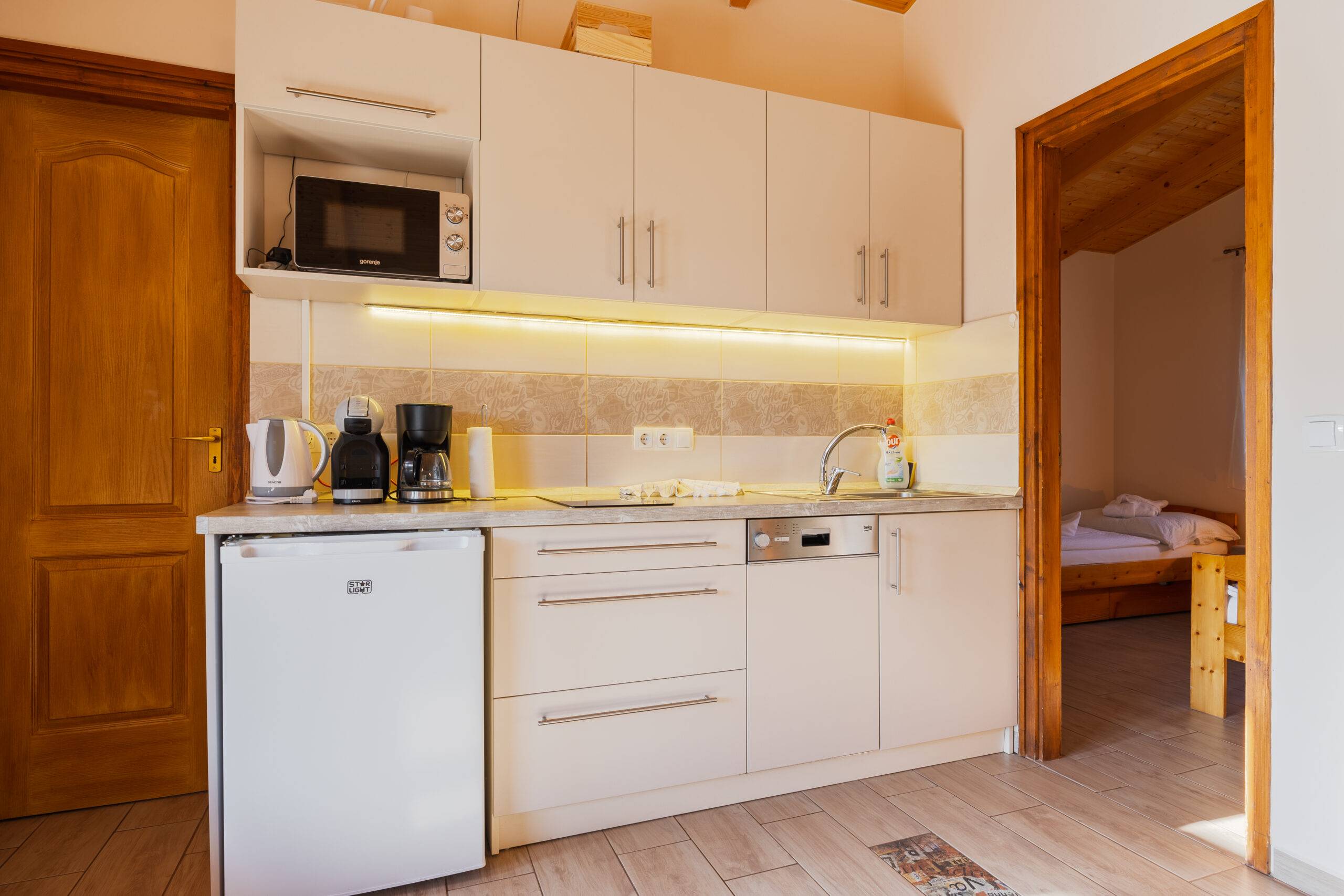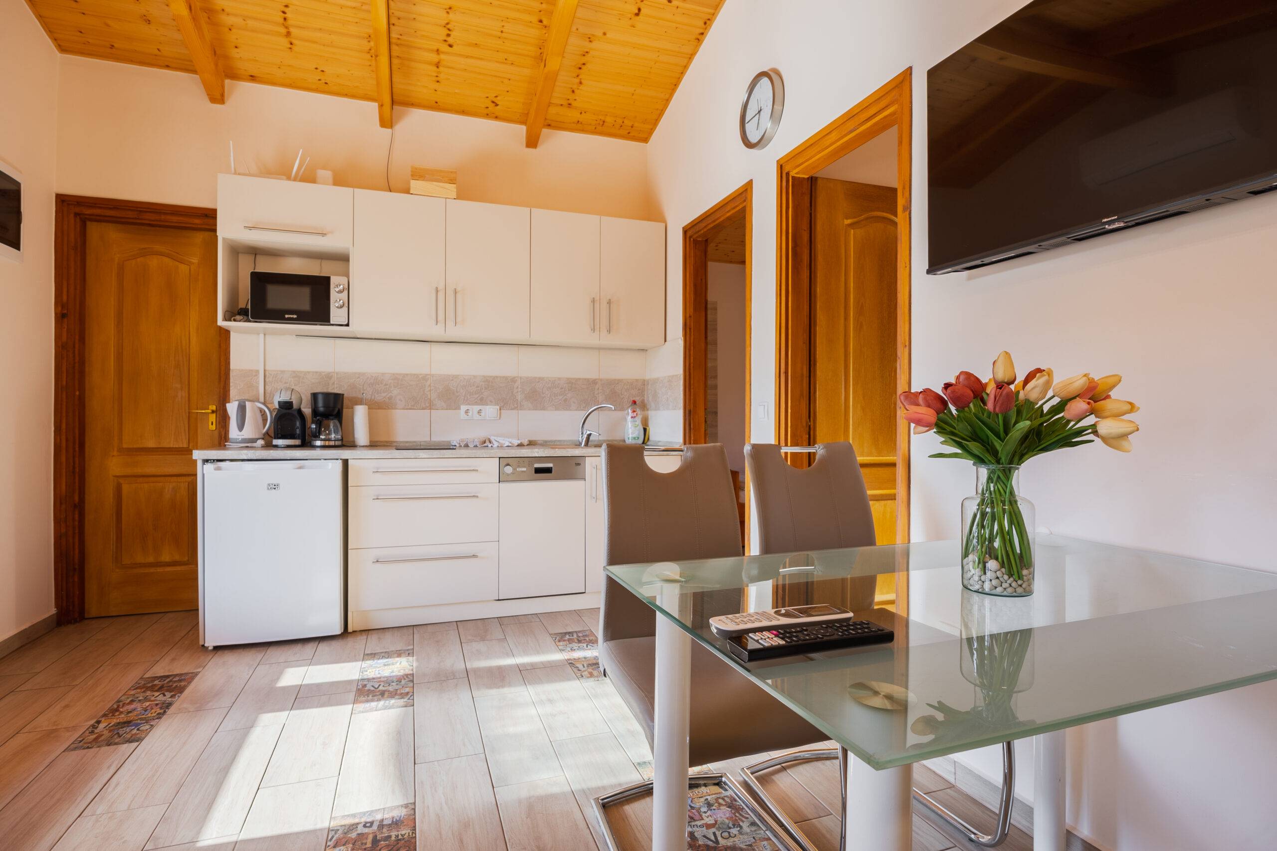 Az apartmanházban két hálószoba, amerikai konyhás nappali, valamint zuhanyzós fürdőszoba áll rendelkezésre a pihenni vágyók számára. Az apartmanhoz egy hangulatos nyugati fekvésű fedett terasz is tartozik, mely lehetővé teszi a feledhetetlen kiülős estéket kora tavasztól késő őszig.