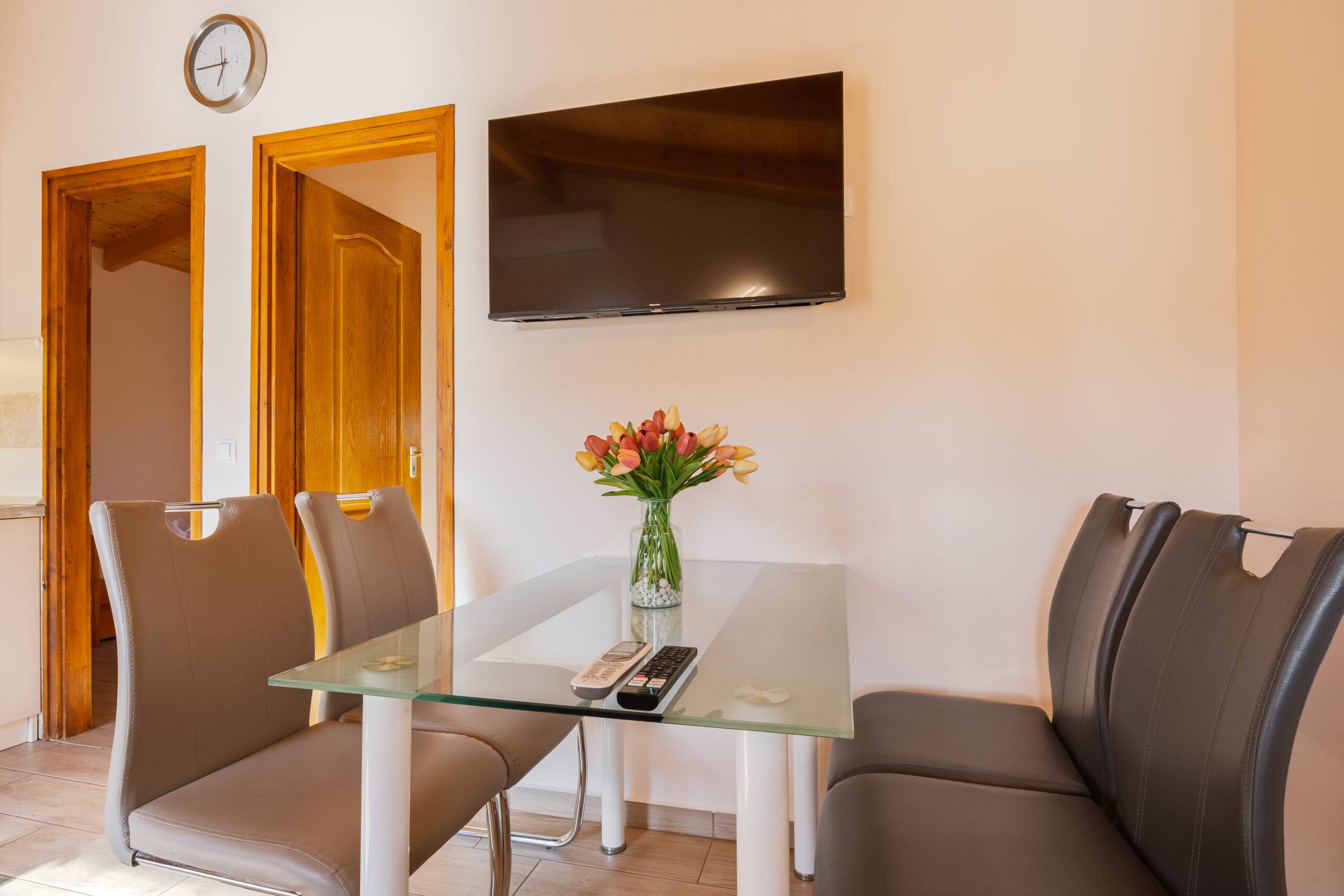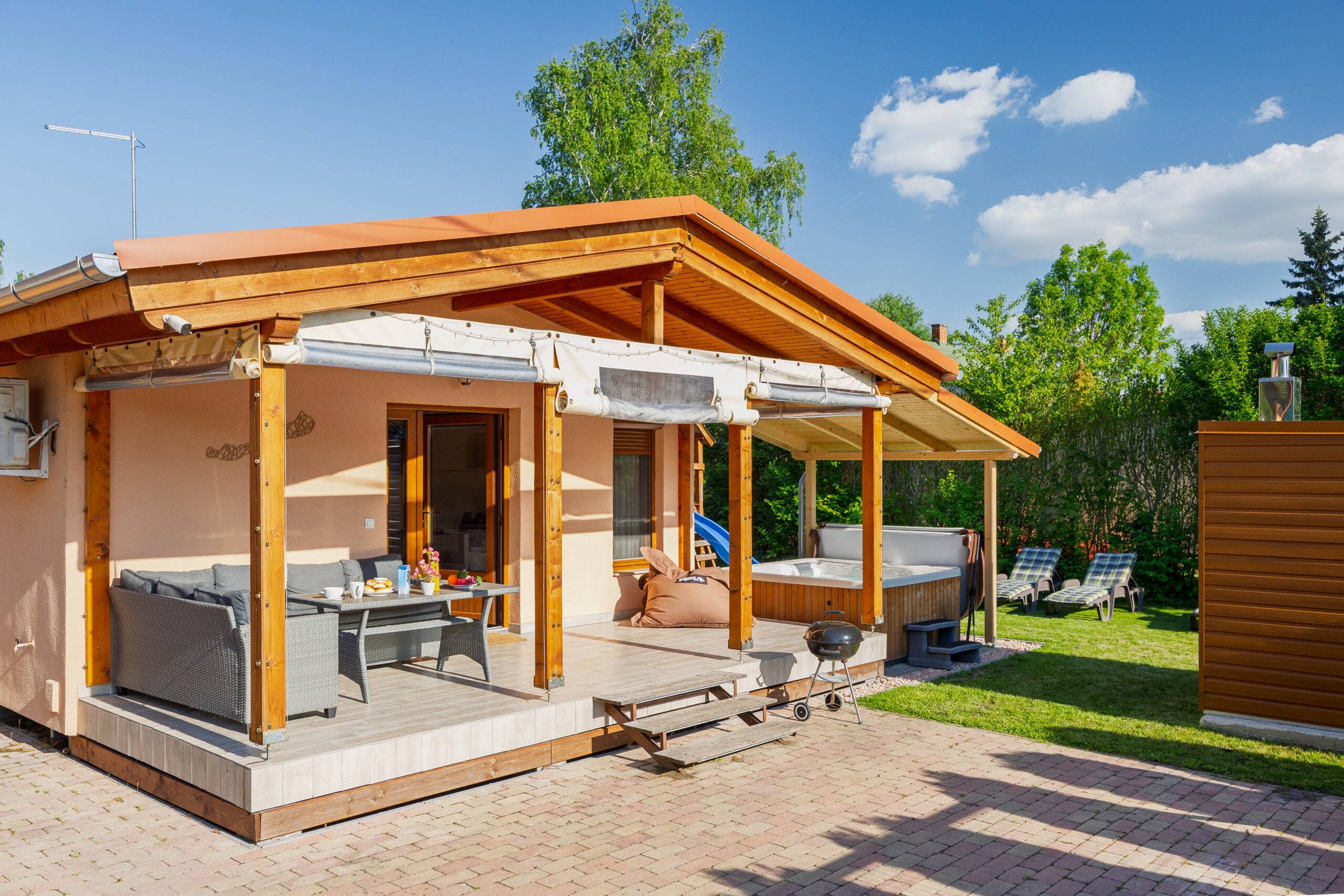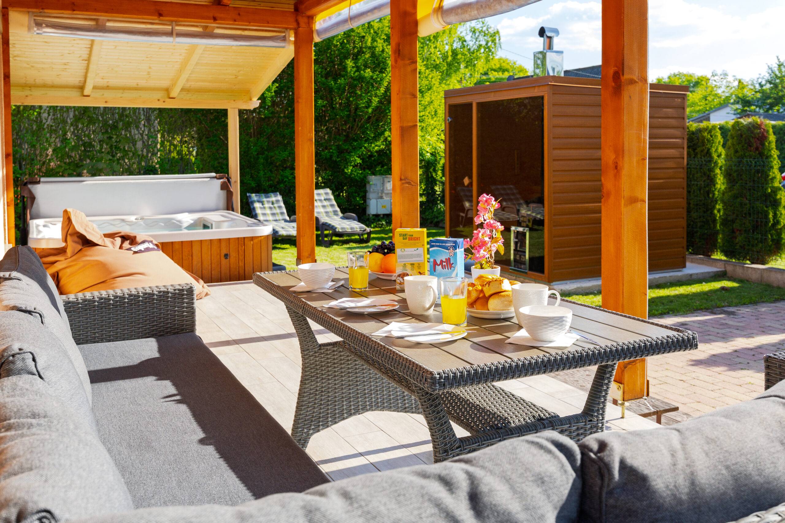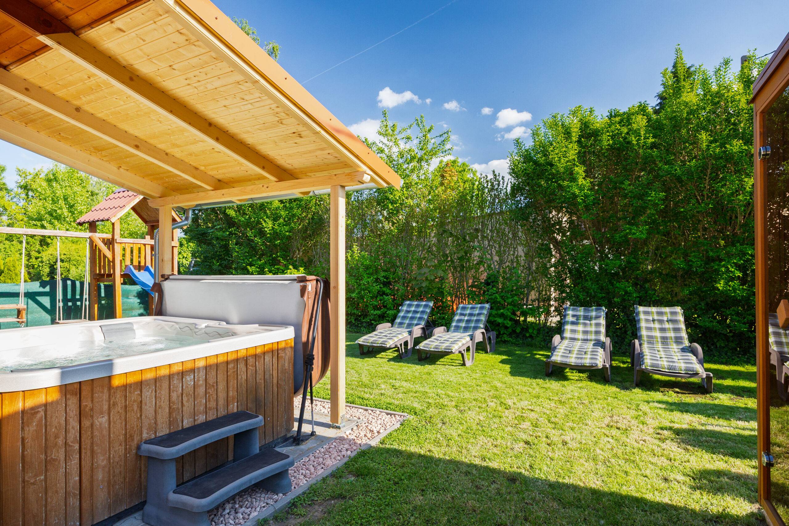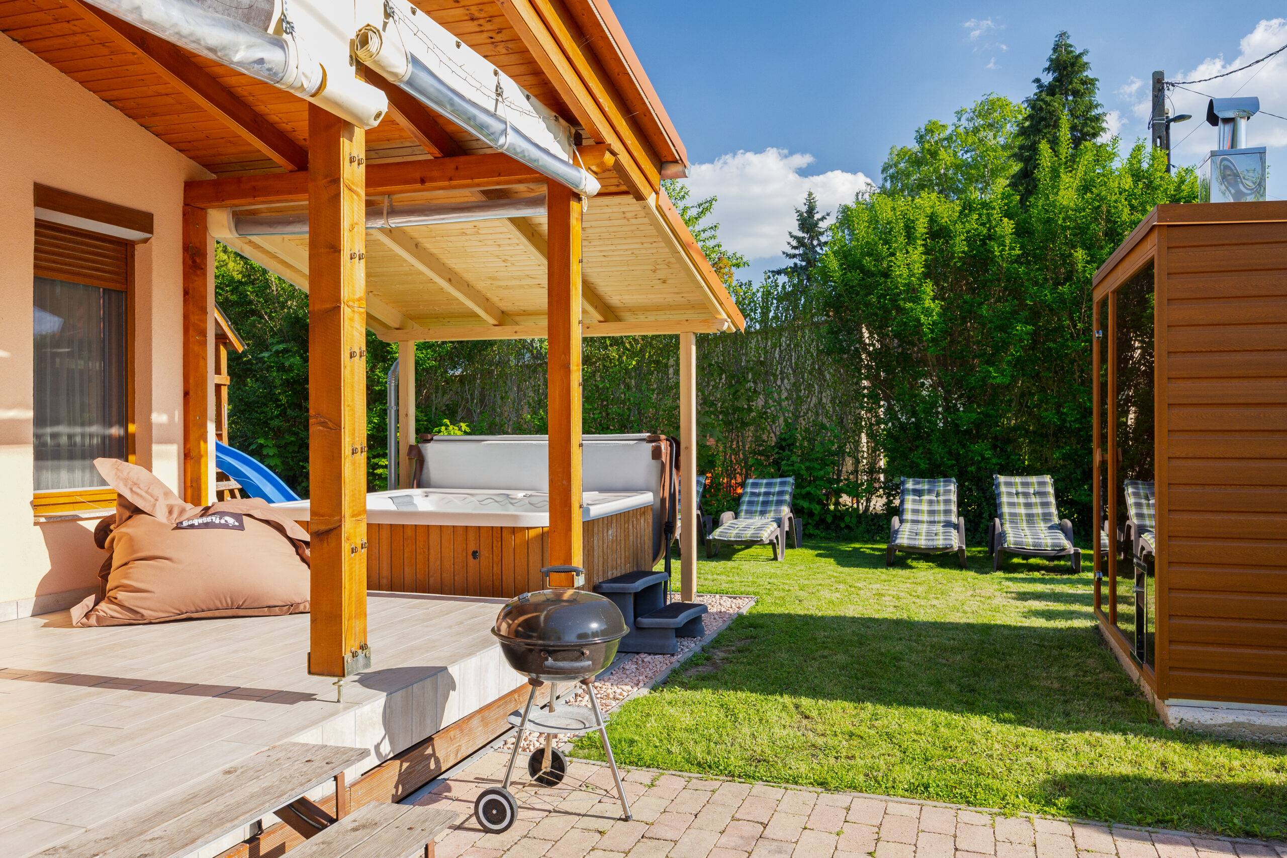 Az apartmanházban két hálószoba, amerikai konyhás nappali, valamint zuhanyzós fürdőszoba áll rendelkezésre a pihenni vágyók számára. Az apartmanhoz egy hangulatos nyugati fekvésű fedett terasz is tartozik, mely lehetővé teszi a feledhetetlen kiülős estéket kora tavasztól késő őszig.